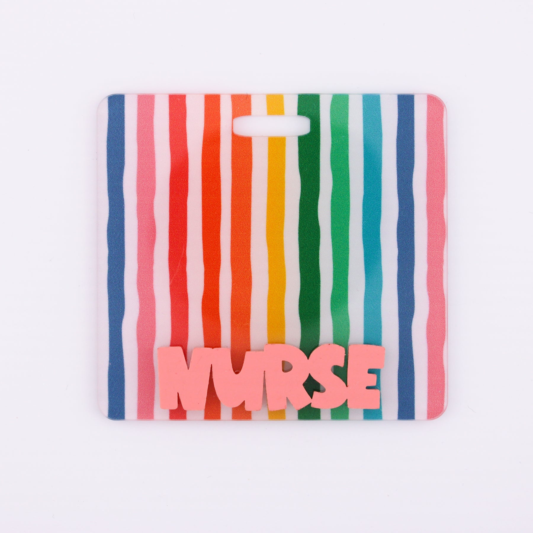 Rainbow Wavy Stripe with Coral Joyful Text // Badge Backer // 2-4 Week Turnaround Time