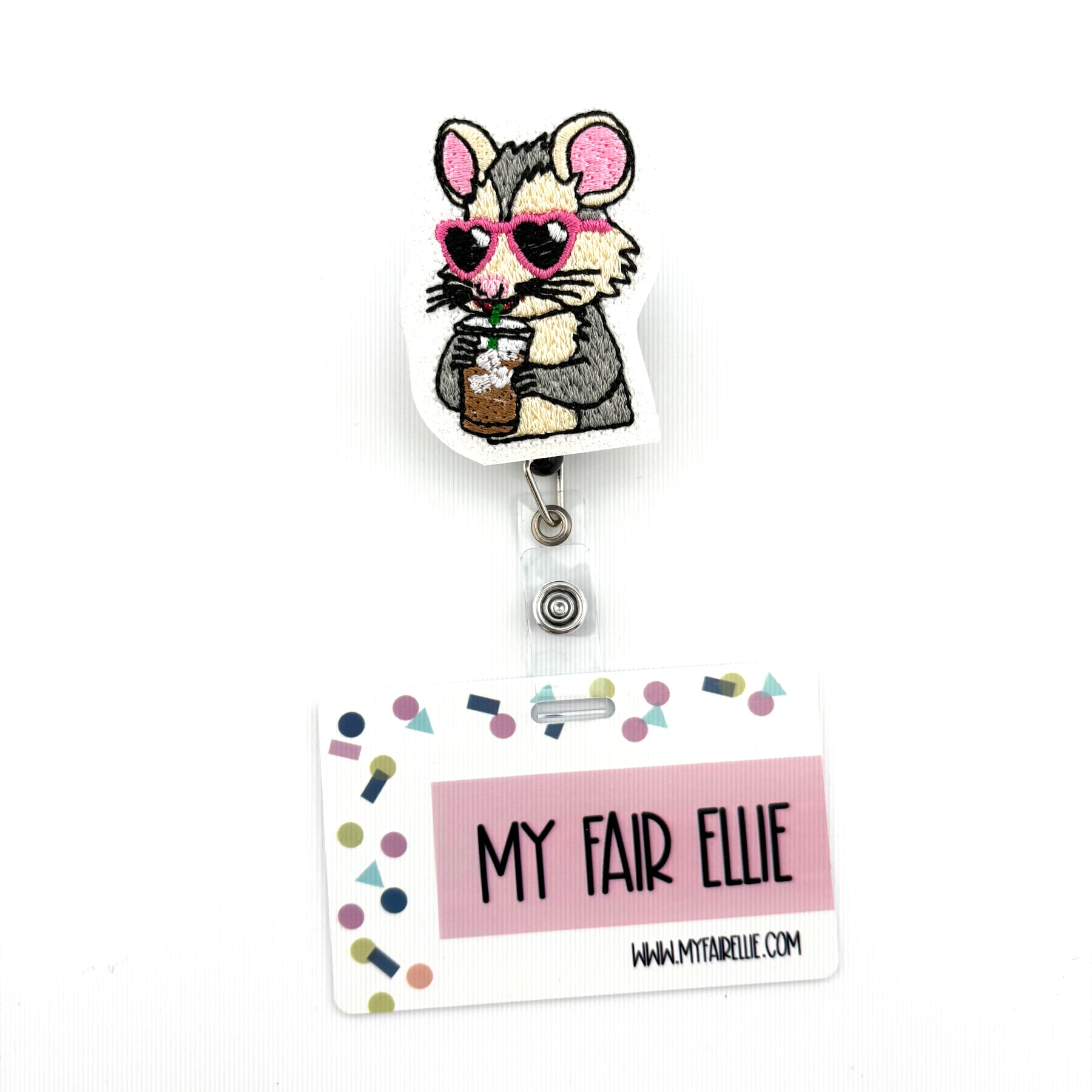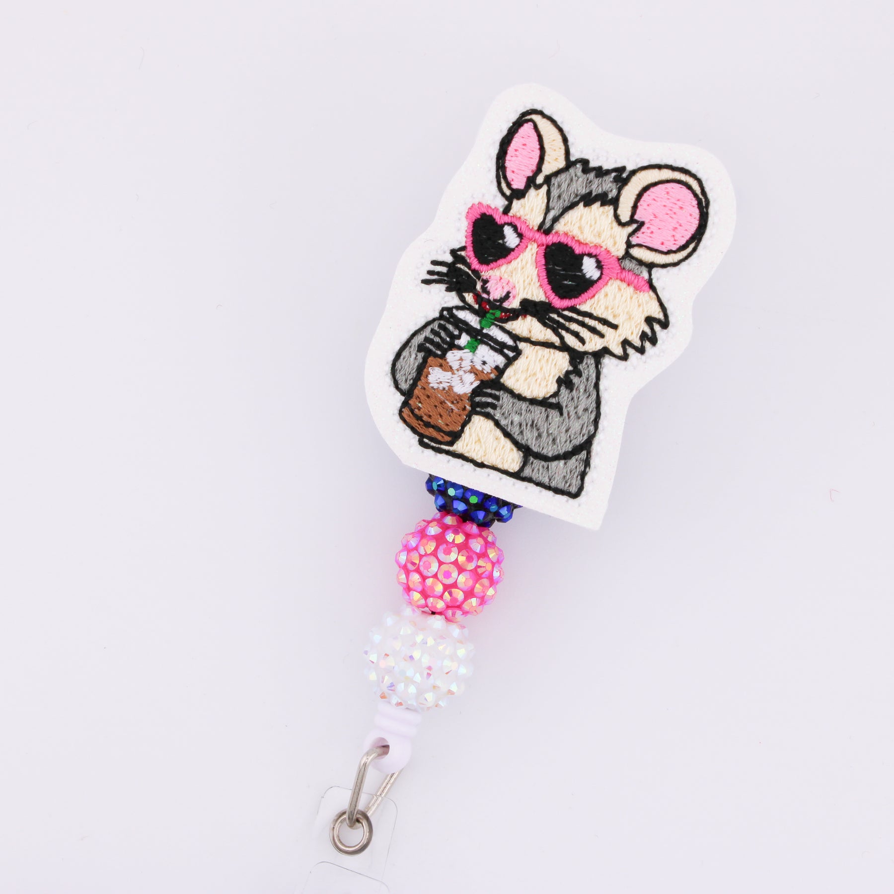 Opossum Drinking Iced Coffee // Badge Buddy