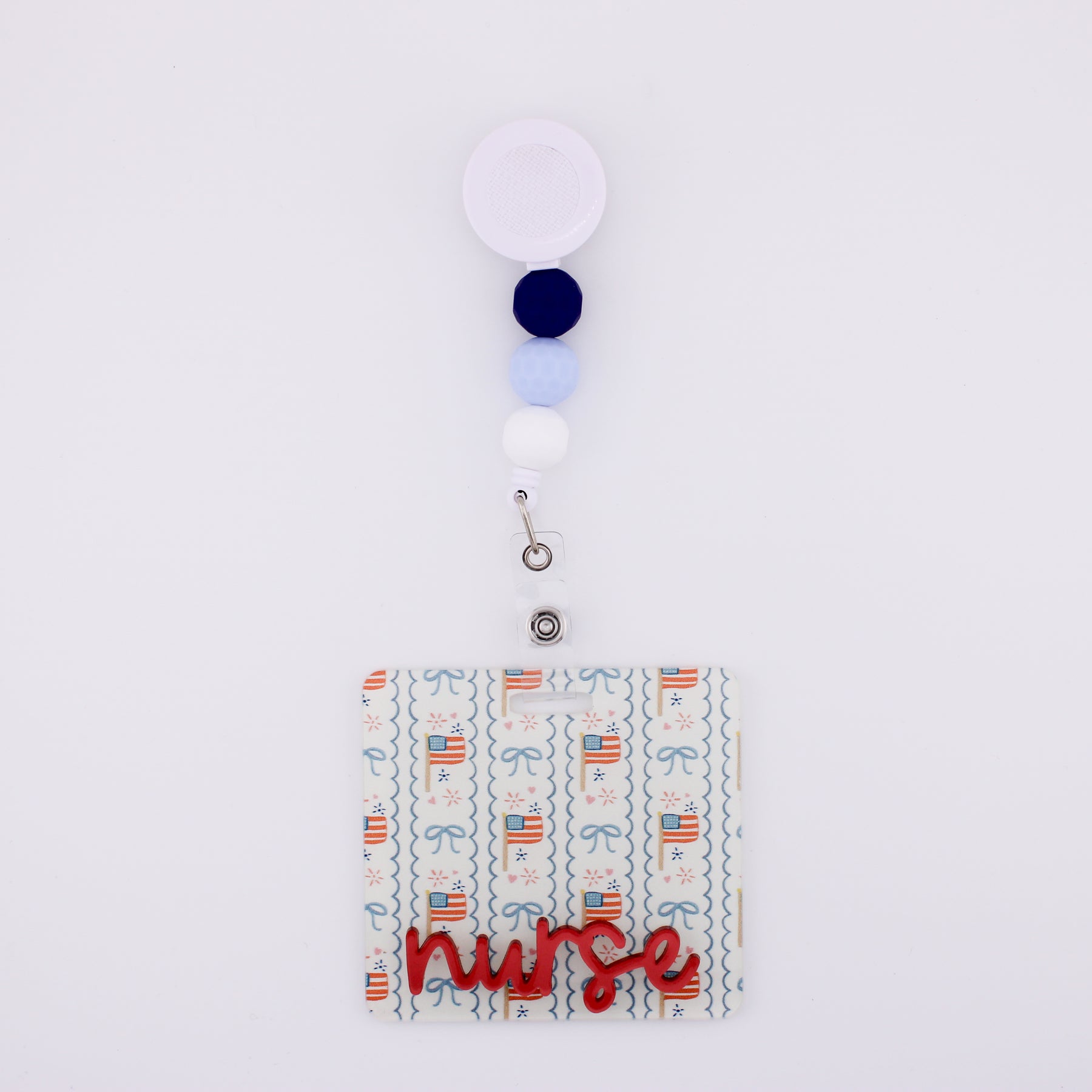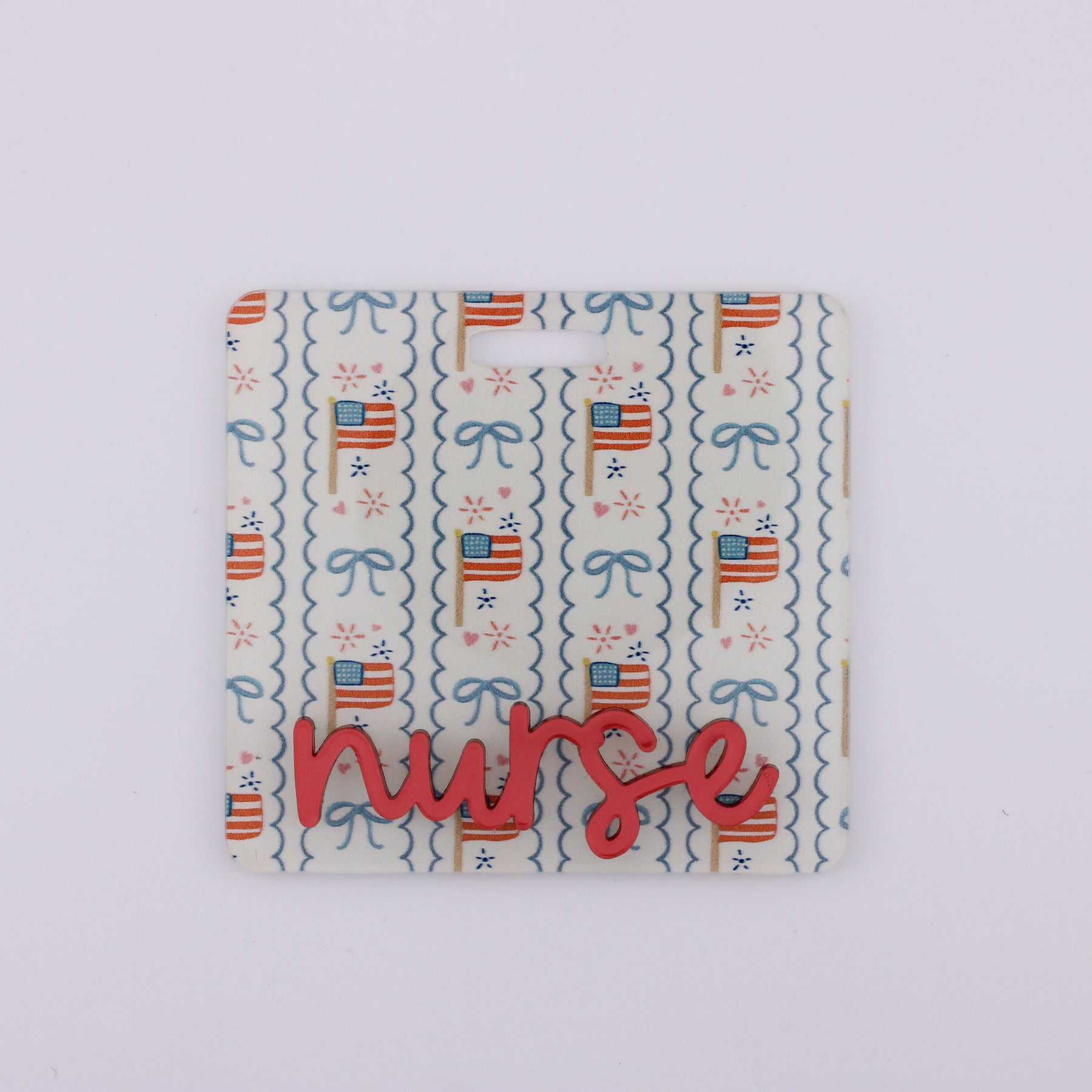 Flag & Bow Stripes with Red Metallic Cake Pop Text // Badge Backer // 2-4 Week Turnaround Time