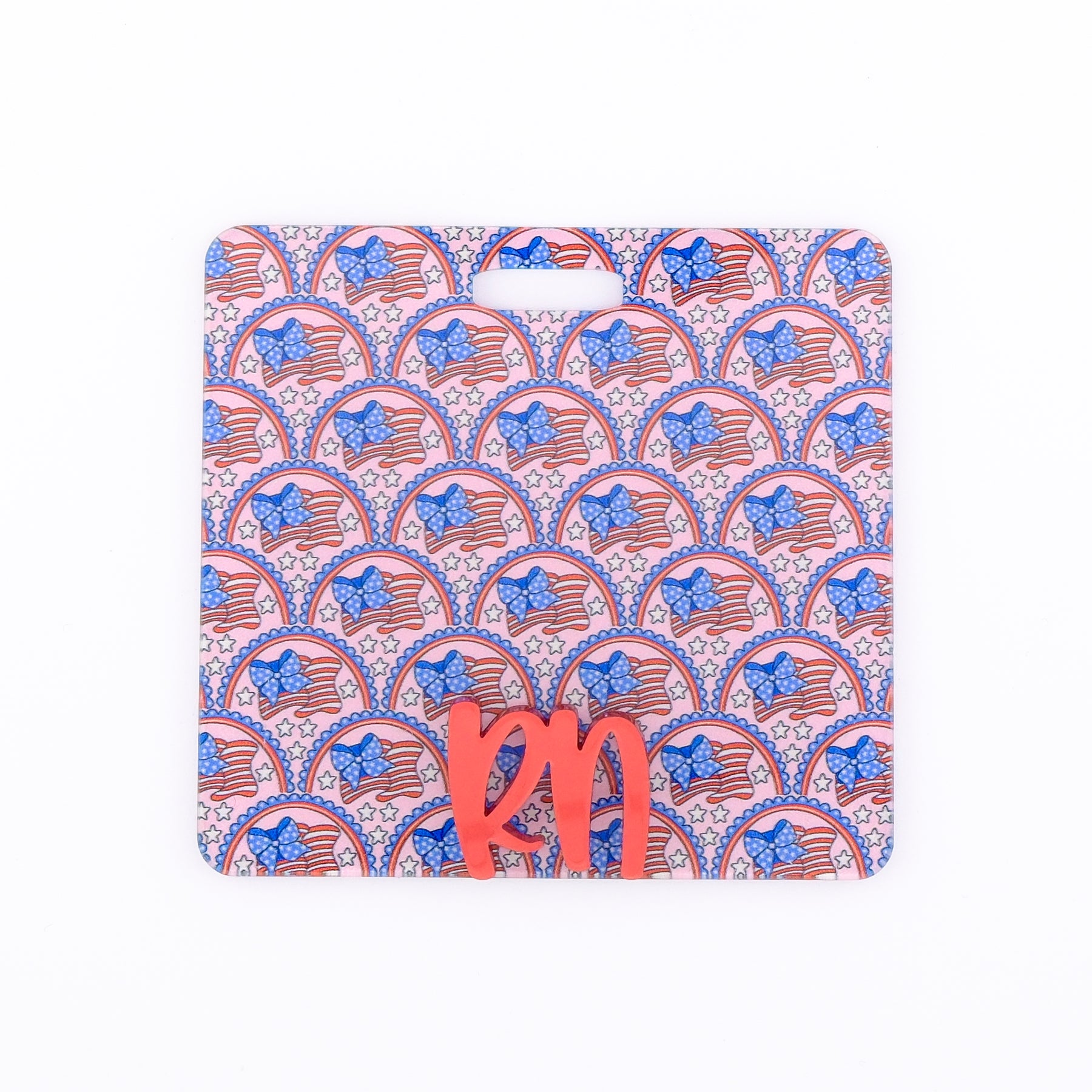 Scalloped USA Flag with Red Metallic Peachy Text // Badge Backer // 2-4 Week Turnaround Time